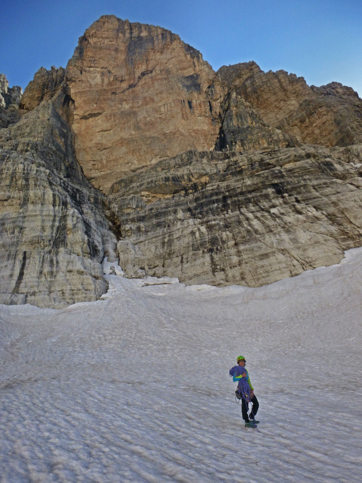 Via ripetuta con Ida Parisi il 15/06/2018, scalando tutti i tiri in libera. Avvicinamento da Baesa senza la Jeep, sfruttando il bivacco invernale del Rif. Agostini per dormire. Ancora tanta neve, a partire già dal rifugio. Abbiamo seguito la relazione originale degli apritori, presente sia sul sito del Rif. Agostini che sulla guida Dolomiti di Brenta vol. 1 - Val d'Ambiéz, trovandola ben fatta e precisa, tranne sulla lunghezza del primo tiro, dato di 45 metri, quando invece sono 60.