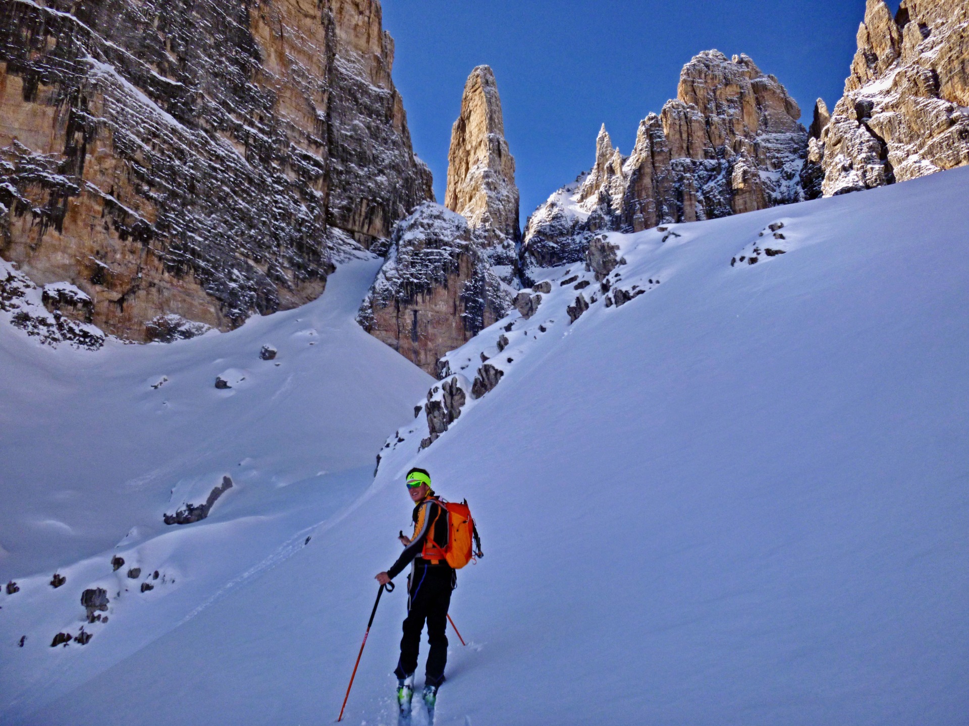 Godersi una sciata nelle neve perfetta e al contempo essere contornati da miriadi di guglie dolomitiche è a mio parere una delle attività più appaganti che l'essere umano possa svolgere in montagna. Data la conformazione montuosa unica al mondo, non esiste luogo più affascinante delle Dolomiti dove praticare lo Sci alpinismo. Molti neanche lo immaginano, ma anche in pieno inverno si potrà andare a sciare in angoli incredibilmente incantevoli e selvaggi nel profondo cuore delle Dolomiti, dove regnano pace e silenzio. Contattatemi in privato per scoprire queste chicche, in ogni caso saranno le condizioni del momento a determinare dove andare, ma le opzioni sono numerose e sarà impossibile rimanere delusi.